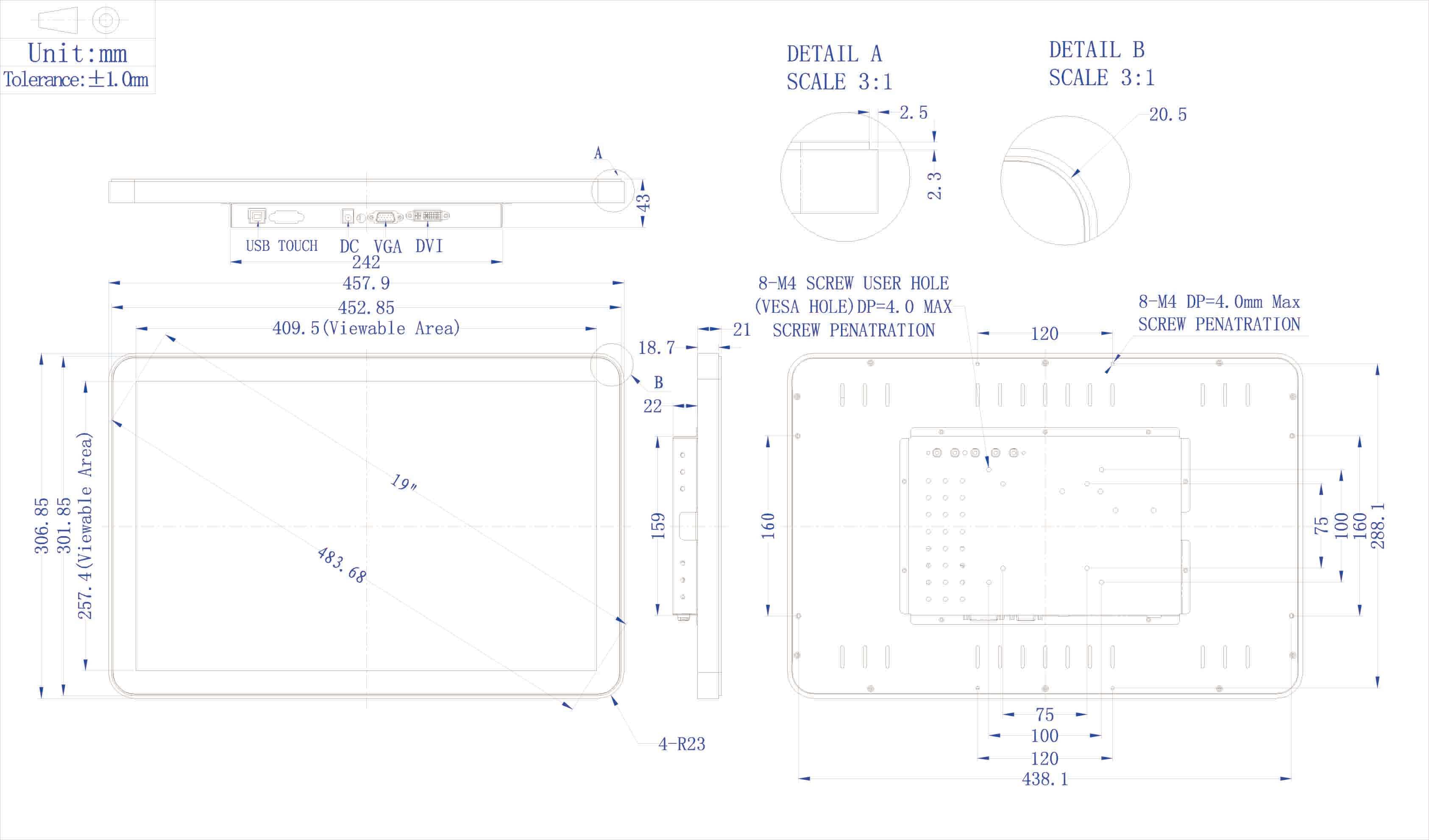 KOT-0190U-CA4P16101.Integrated with Keetouch CA touch panel for the ultimate in image quality